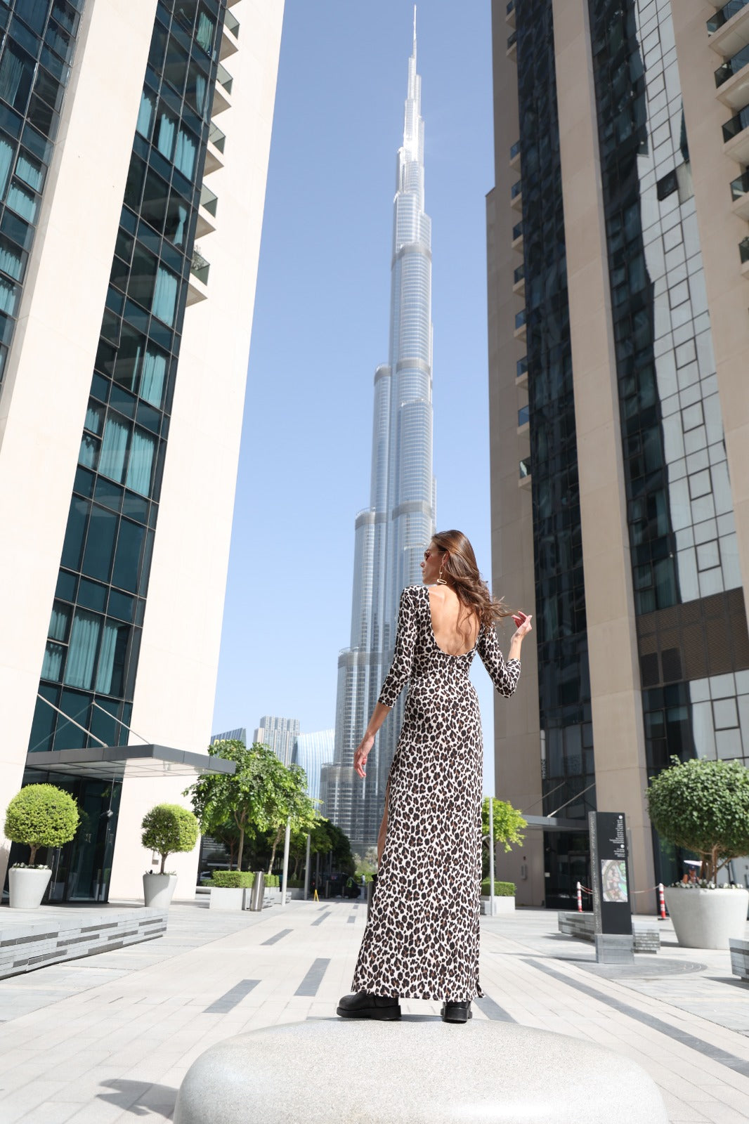 Maha is our signature one size dress with open back. Featuring three-quarter sleeves, and two stylish side slits, this dress combines comfort and sophistication. Its versatile design drapes beautifully on various body types, making it perfect for any occasion. Made from soft, lightweight jersey fabric."